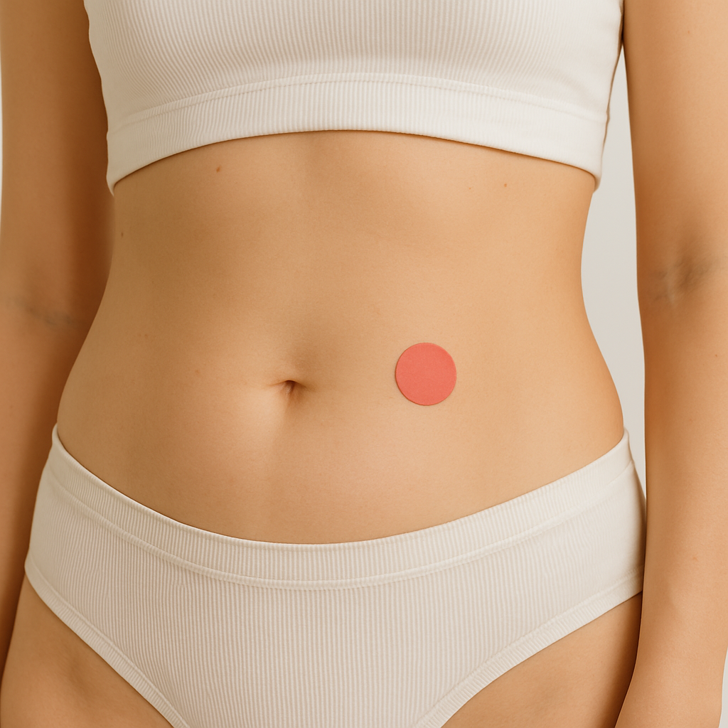 Placez 1 patch sur une zone propre et sèche (ventre, cuisse, hanche). Il se pose en quelques secondes et reste invisible sous les vêtements.